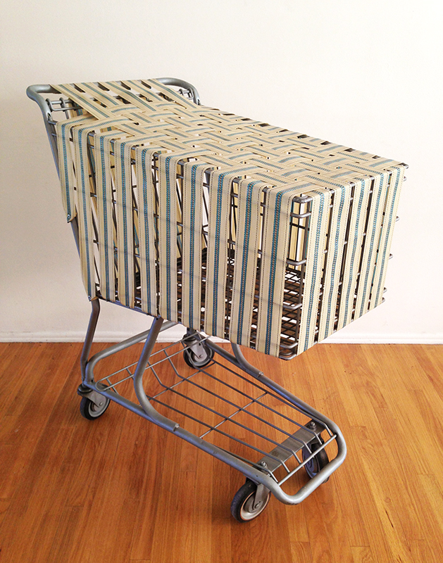 shopping cart, paint, vinyl strapping.